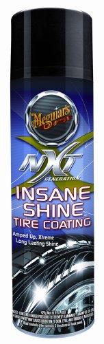 Meguiar's G13115 NXT Generation Insane Shine Tire Coating 15 oz. is the ULTIMATE in high gloss for tires - a deep, dark, ¿insane¿ wet look that is fast and easy¿just spray and walk away. Engineered Synthetic Polymers (ESP) combined with specially designed antiozonants create a mirror-like shine that prevents browning and premature aging.